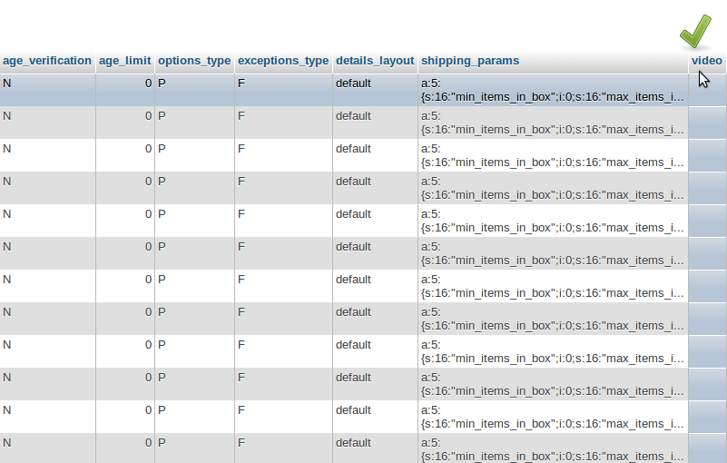 3. В нашем случае, необходимо создать колонку video в таблице cscart_products.