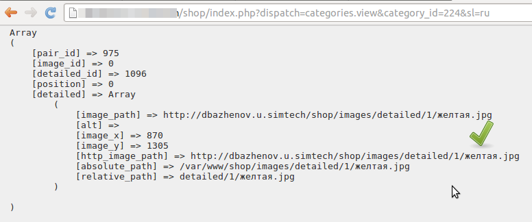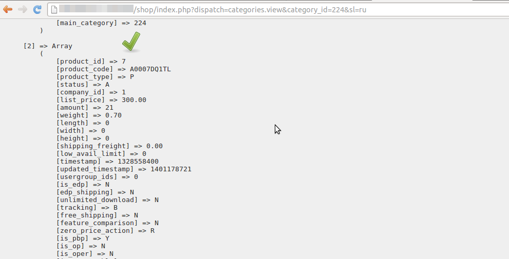 fn_print_r('test'). Вставляем данную функцию в начало блока$mode == 'view'.} elseif ($mode == 'view') { fn_print_r('test')