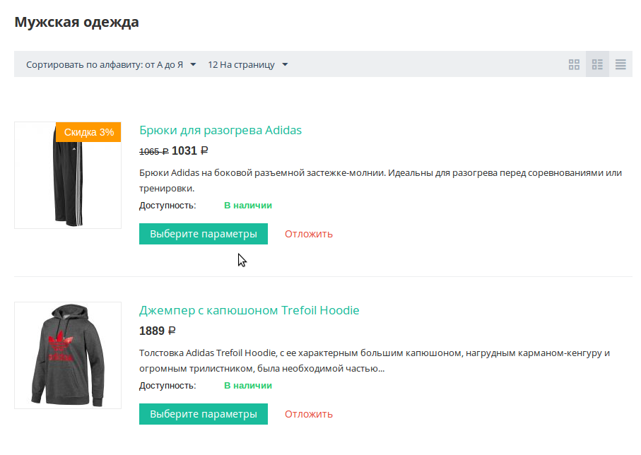 Отображение опций в списке товаров¶