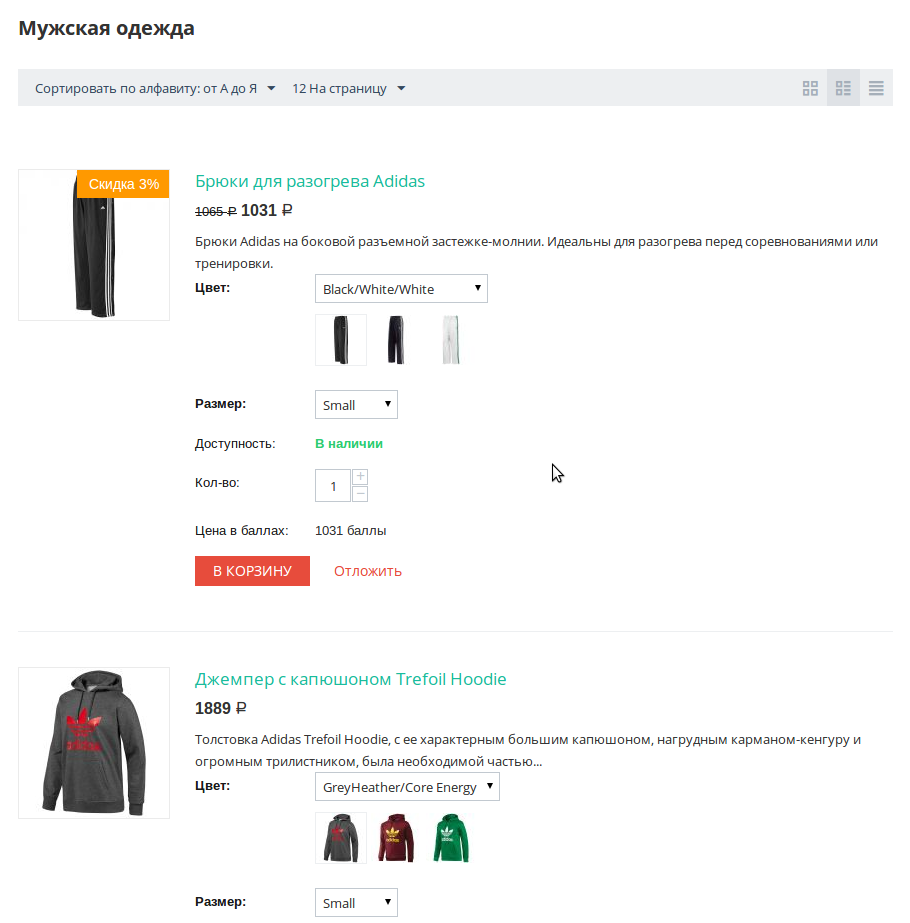 Вы можете включить отображение опций на странице каталога, если это необходимо.