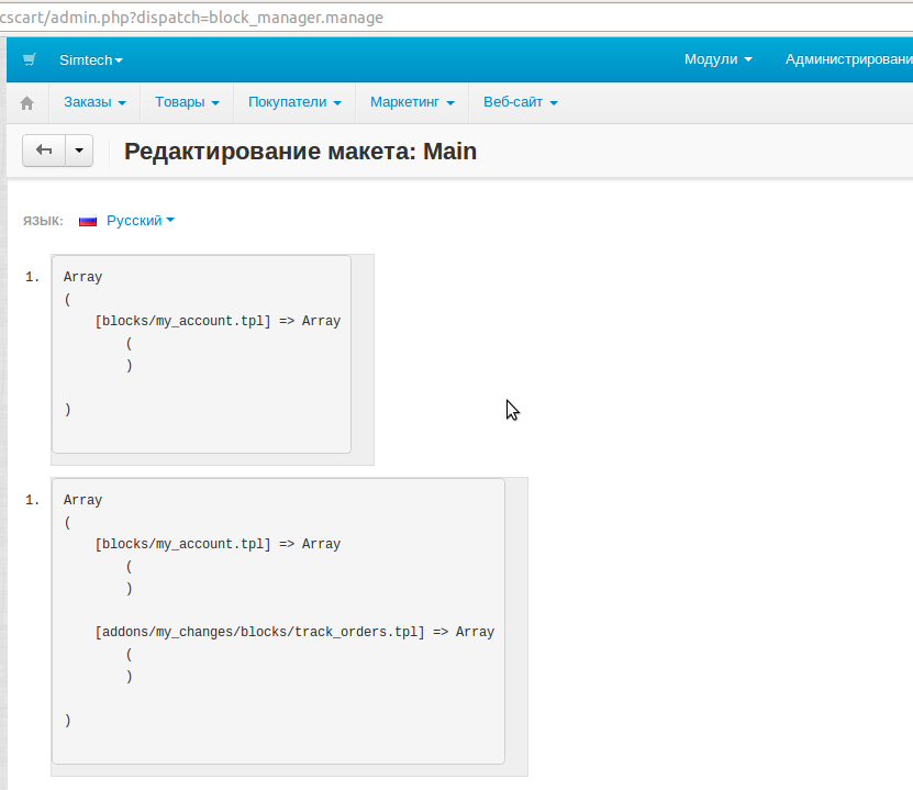 valueдля элемента списка равноblocks/my_account.tplТаким образом мы узнали какой шаблон будет подключен на витрине.