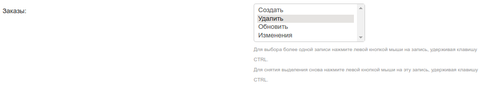 Например, на странице Настройки → Журнал событий есть настройка Заказы. Информация о том, какие варианты выбраны, хранится в настройке log_type_orders (таблица settings_objects). А список возможных вариантов данной настройки хранится в таблице settings_variants.