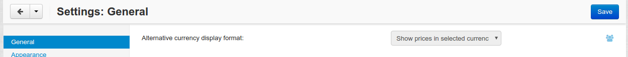 Например, в edition_type="ULT" при наличии нескольких витрин настройка Alternative currency display format (Формат отображения альтернативной валюты) будет выглядеть следующим образом: