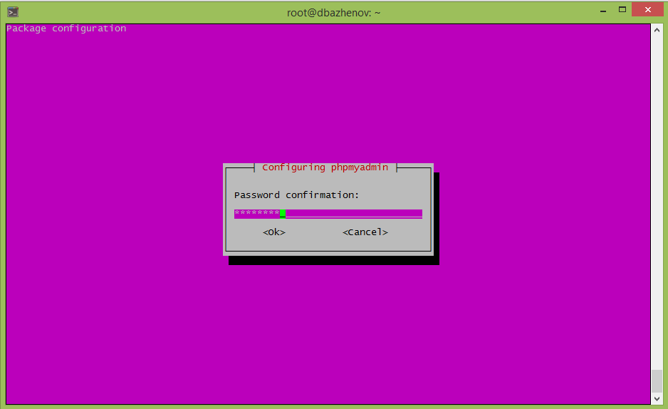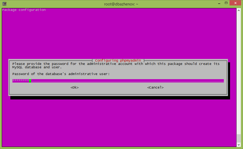 Вводим несколько раз пароль от базы данных. Тот который использовали при установке MySQL.
