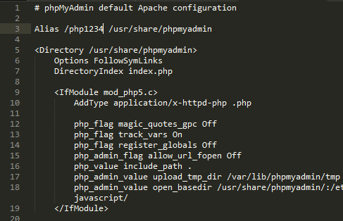 /phpmyadminна уникальное слово, в строке:Alias /phpmyadmin /usr/share/phpmyadmin