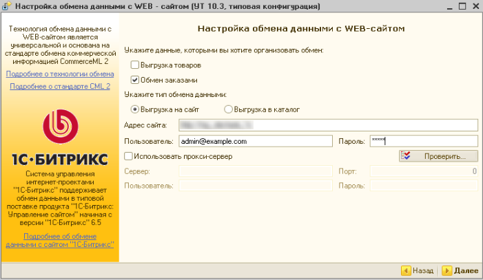 С помощью созданной настройки вы можете выполнить обмен с сайтом.