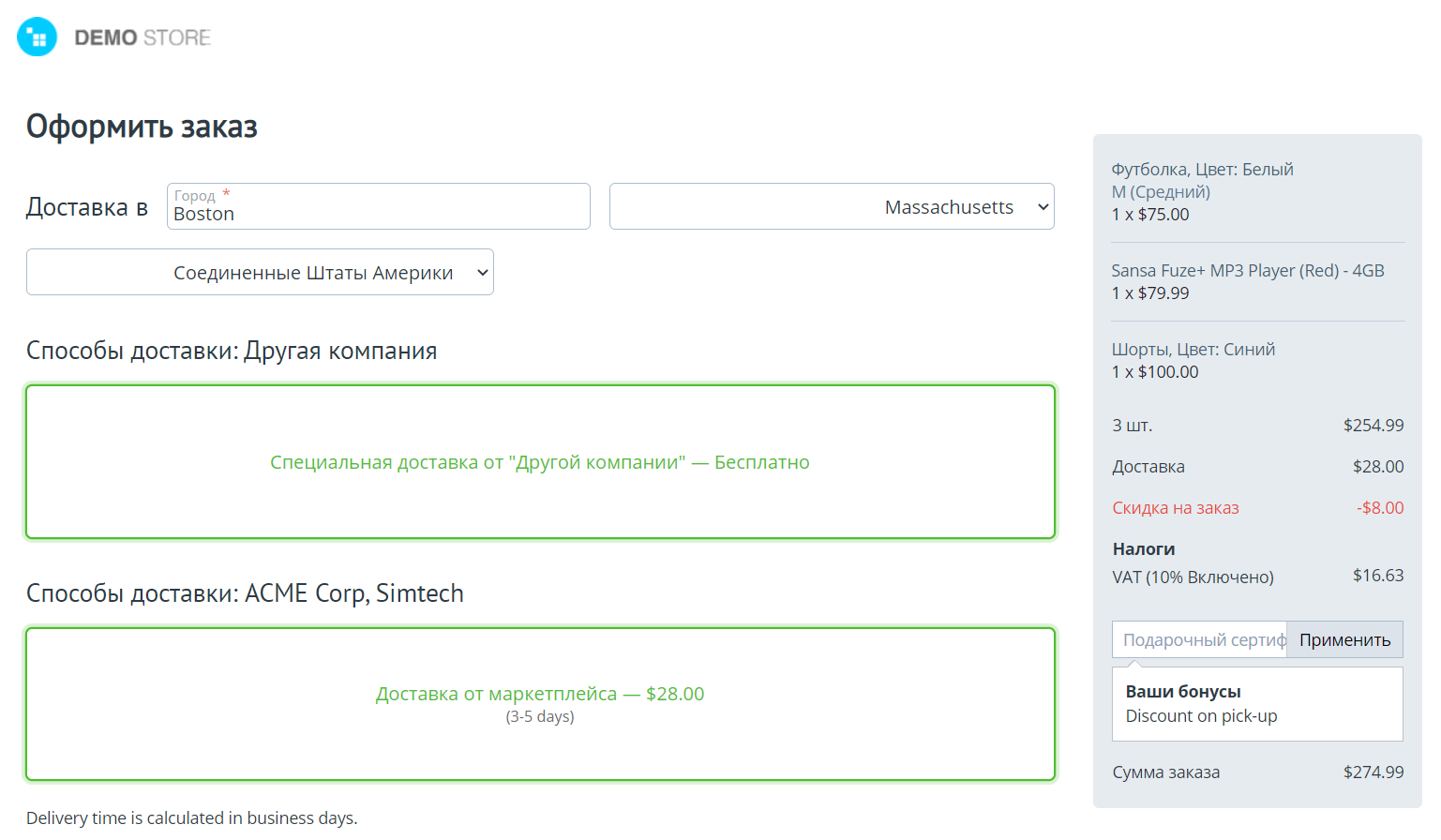 По умолчанию в Multi-Vendor реализован один сценарий: каждый продавец сам доставляет свои товары, и покупатели оплачивают доставку отдельно каждому продавцу. Такой подход проще для маркетплейса, когда он только начинает работу.