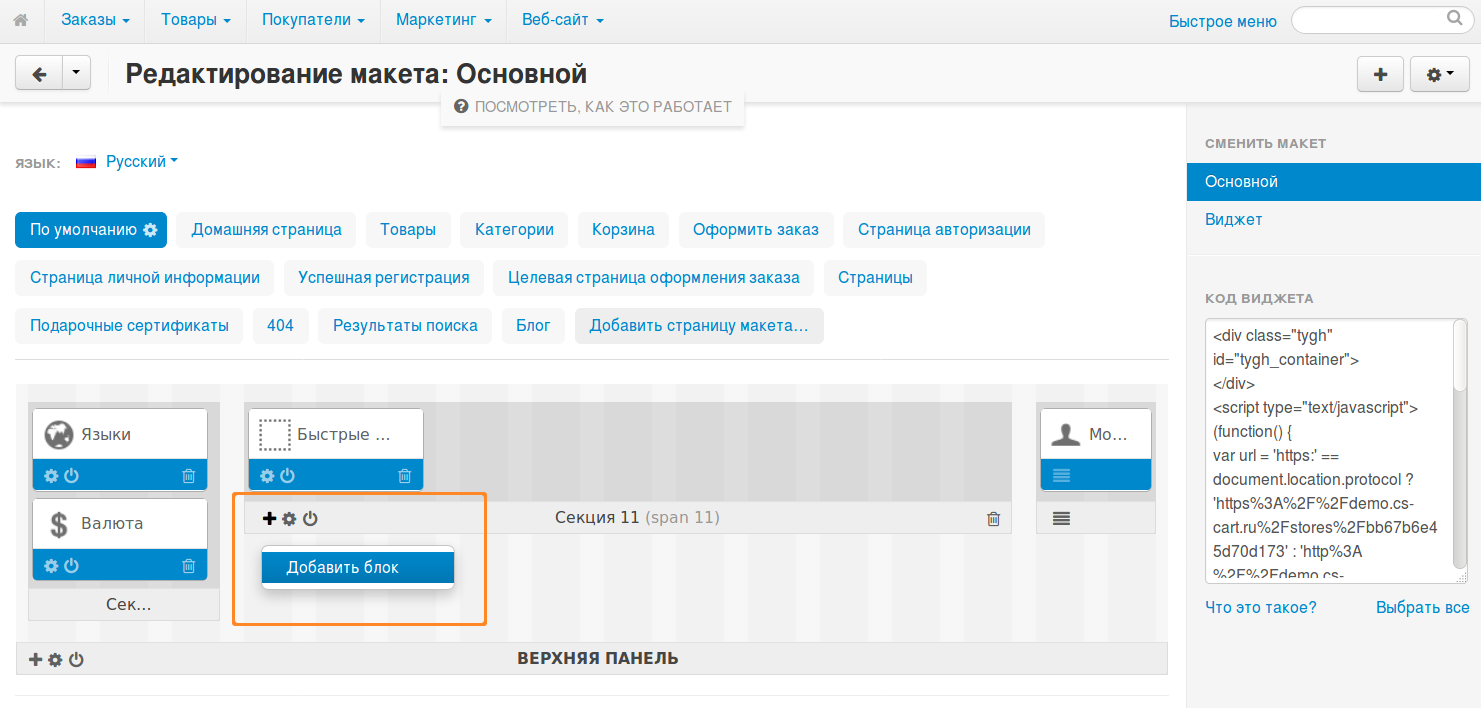 2.1. Перейдете на страницу Дизайн → Макеты в панели администратора вашего магазина.