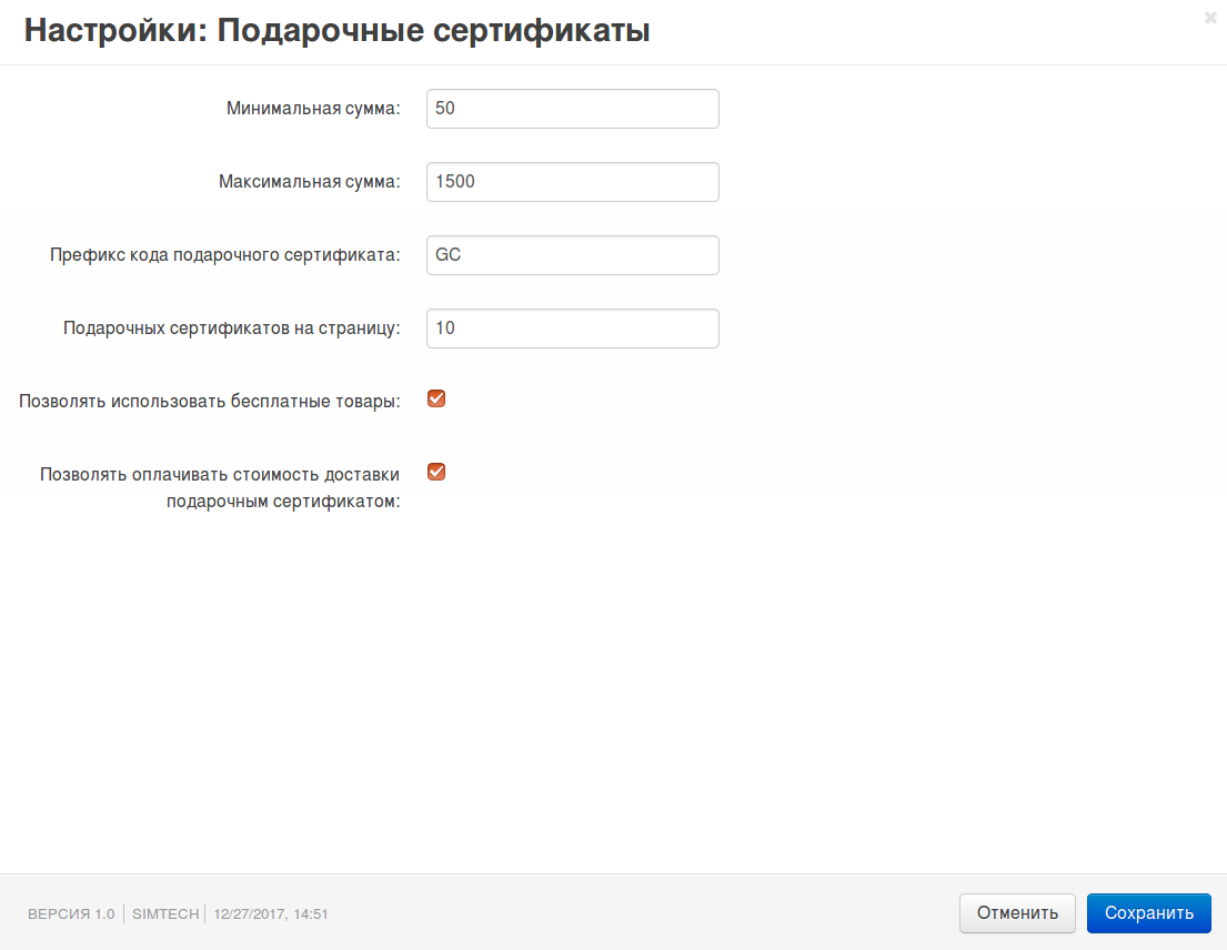Прежде чем покупатели смогут покупать и использовать подарочные сертификаты, нужно настроить модуль: