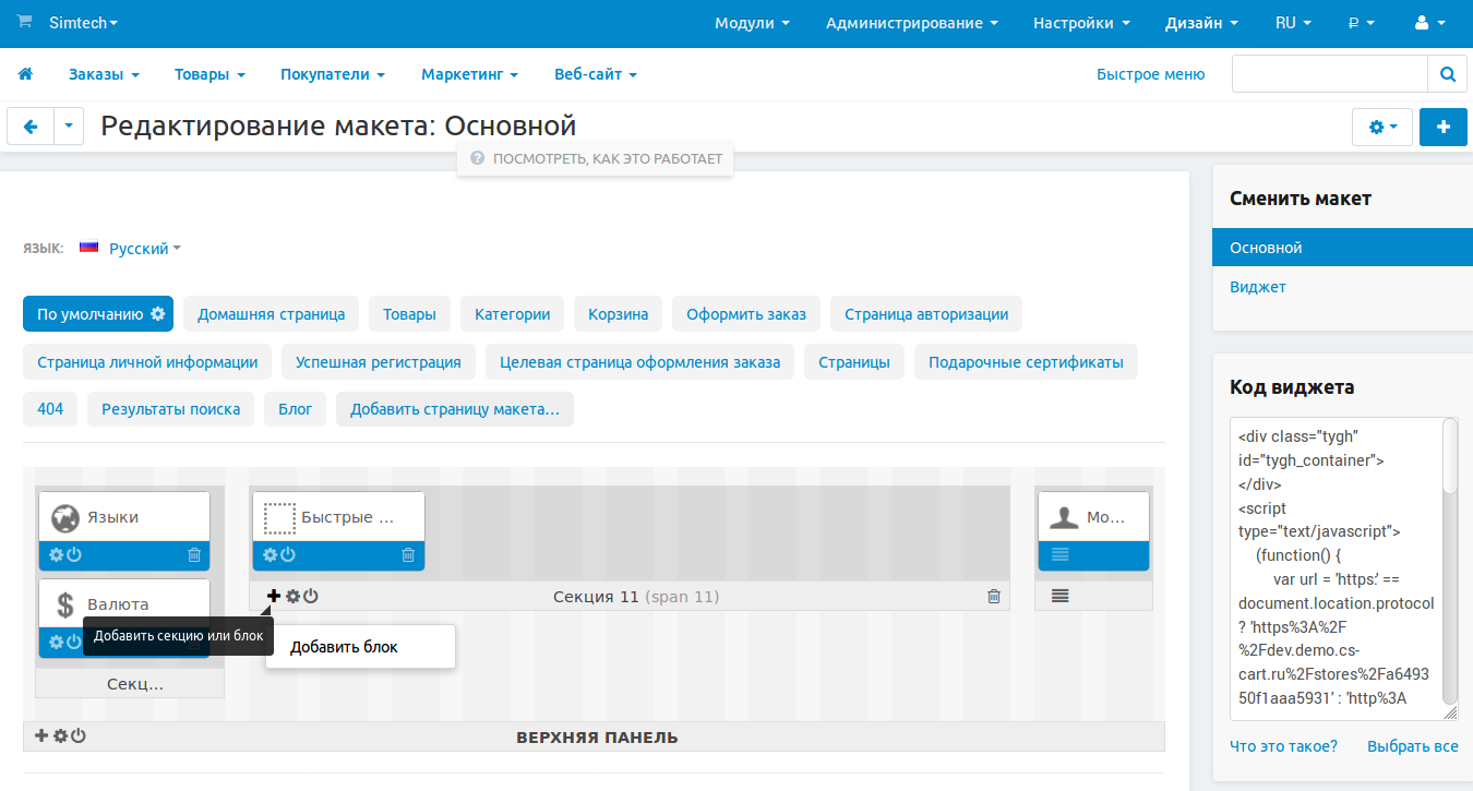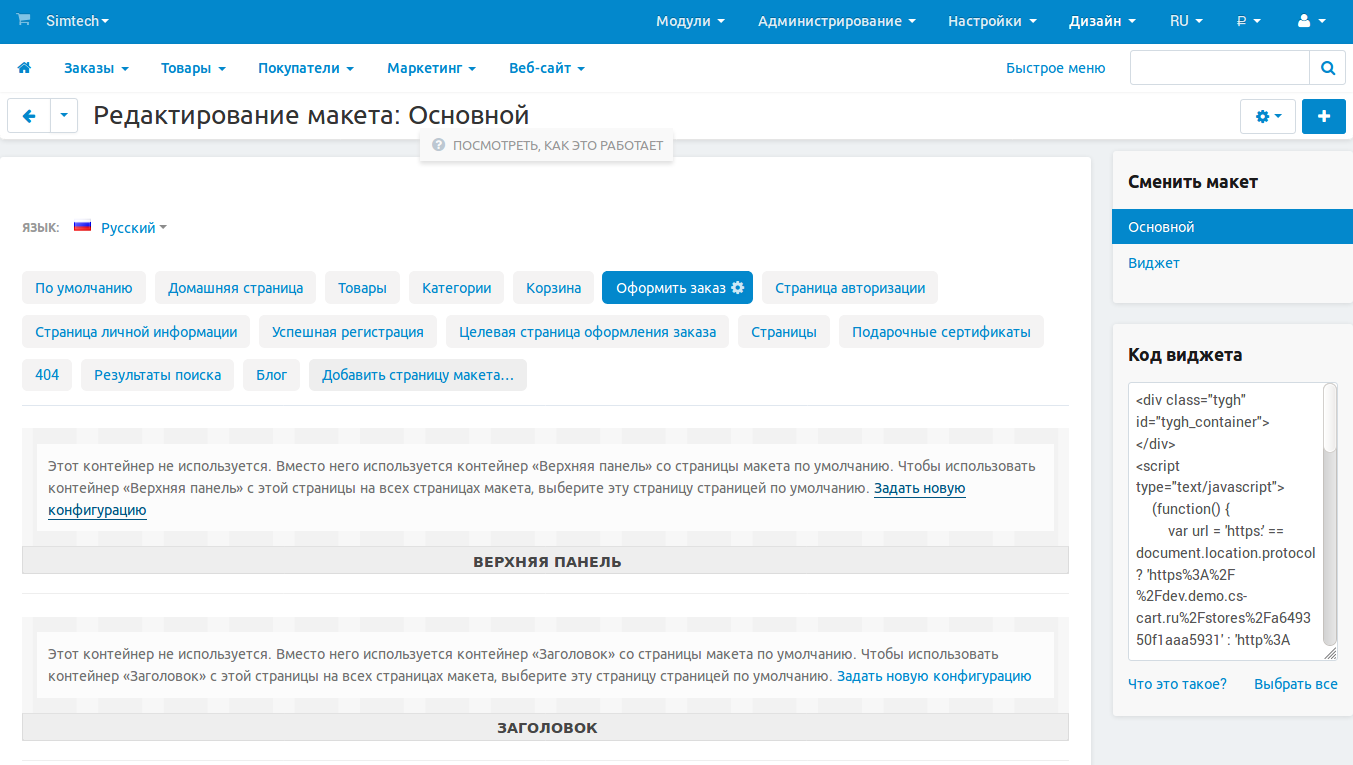 (опционально) Есть ещё одно место, где можно поменять внешний вид страницы оформления заказа: Дизайн → Макеты (вкладка Оформить заказ). Здесь вы можете добавить какие-то элементы на страницу или наоборот убрать всё лишнее.