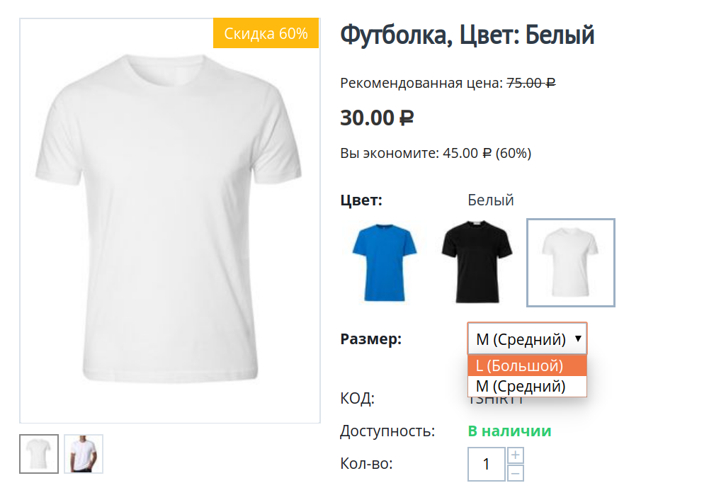 Когда несколько похожих товаров отличаются одной характеристикой, переключение между этими товарами поможет покупателю найти нужный. Модуль Вариации товаров решит две задачи: