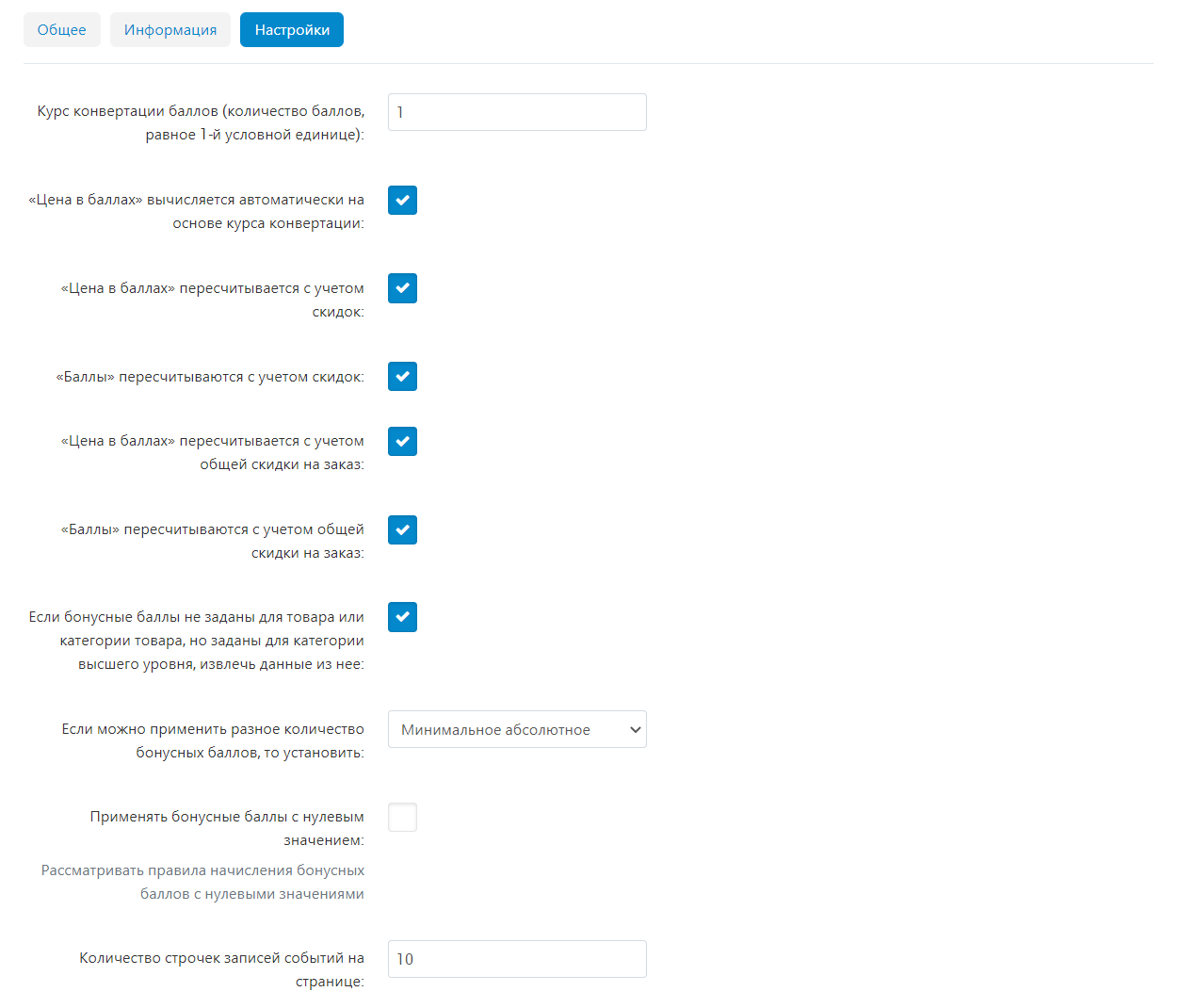 4. Задайте нужные вам настройки модуля “Бонусные баллы”.