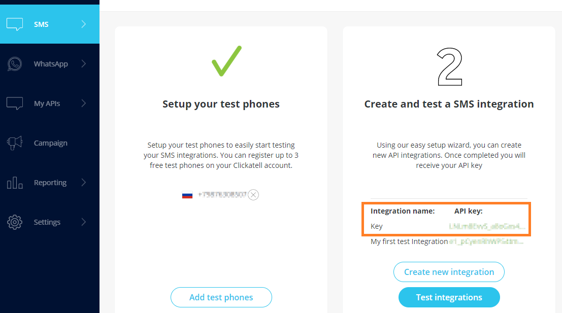 5. Теперь настройте SMS-уведомления. Для этого нажмите Create New Integration.
