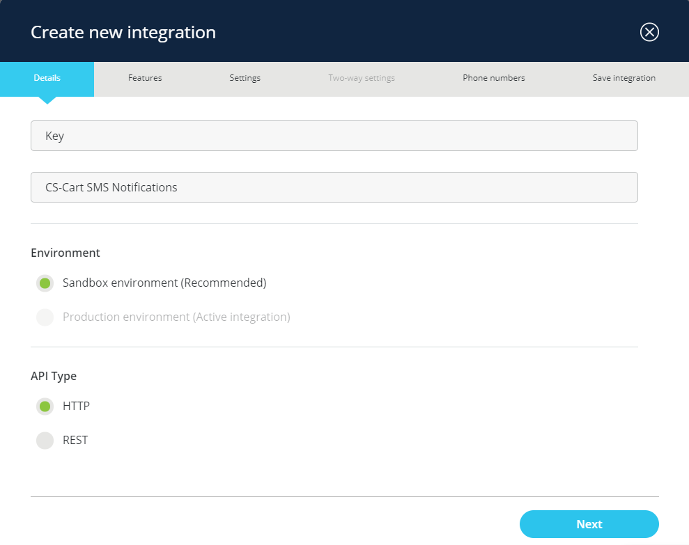 6. В новом окне на вкладке Details введите имя и описание ключа. В разделе API Type установите HTTP.