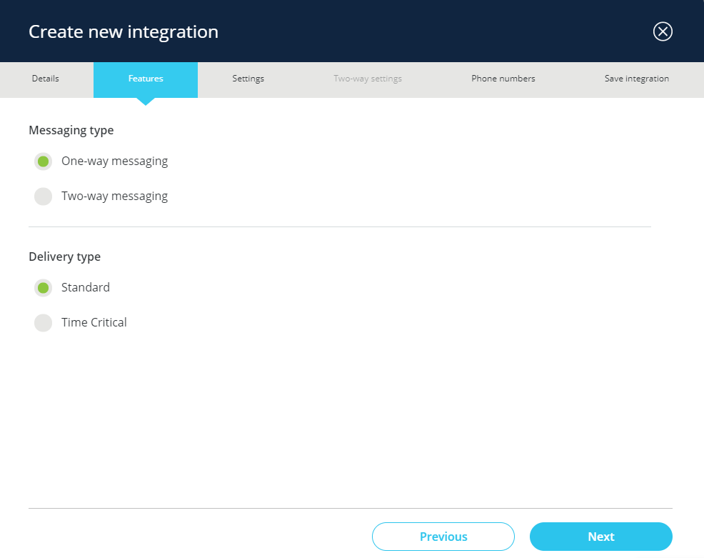 7. На вкладке Features в Messaging type выберите One-way messaging. В поле Delivery Type можете выбрать любой вариант.