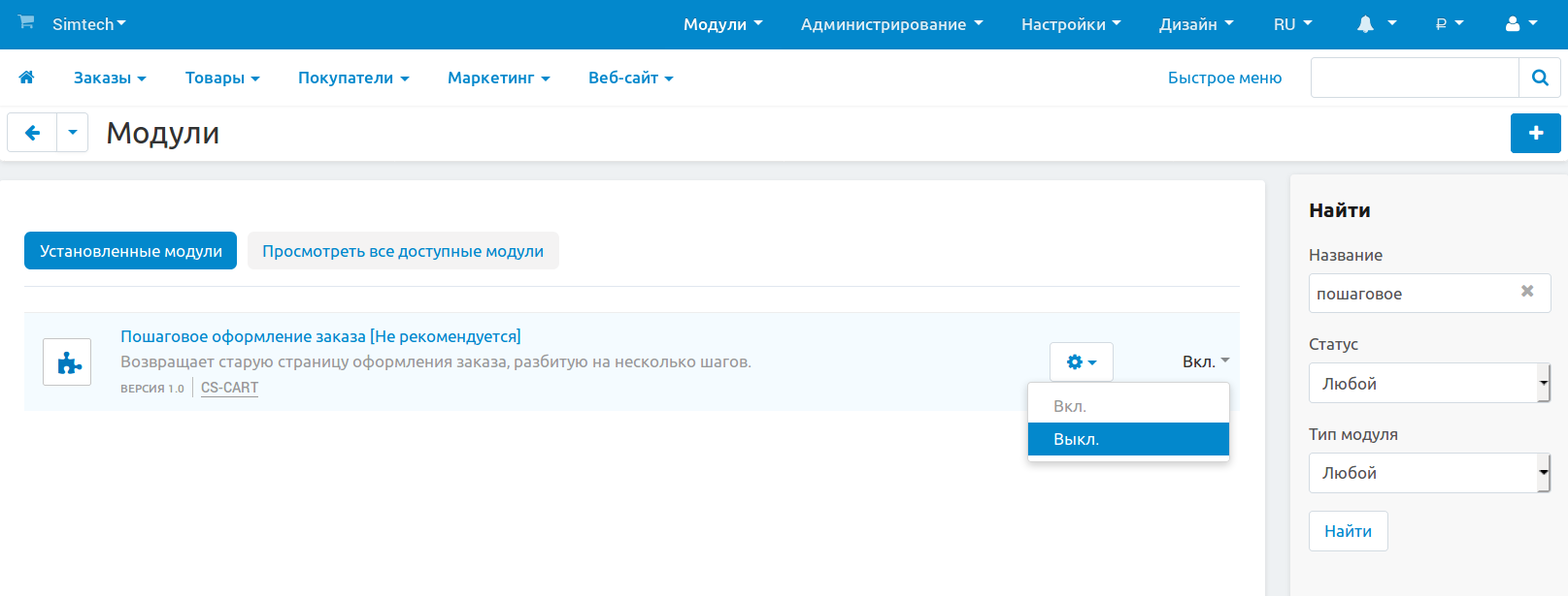 2. Найдите модуль Пошаговое оформление заказа.