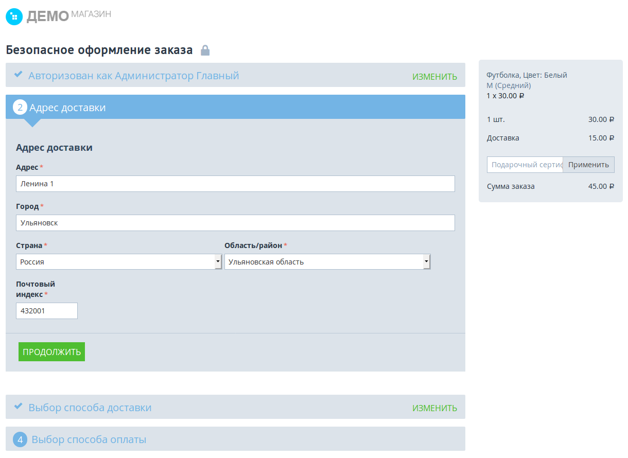 “Пошаговое оформление заказа” [Не рекомендуется]