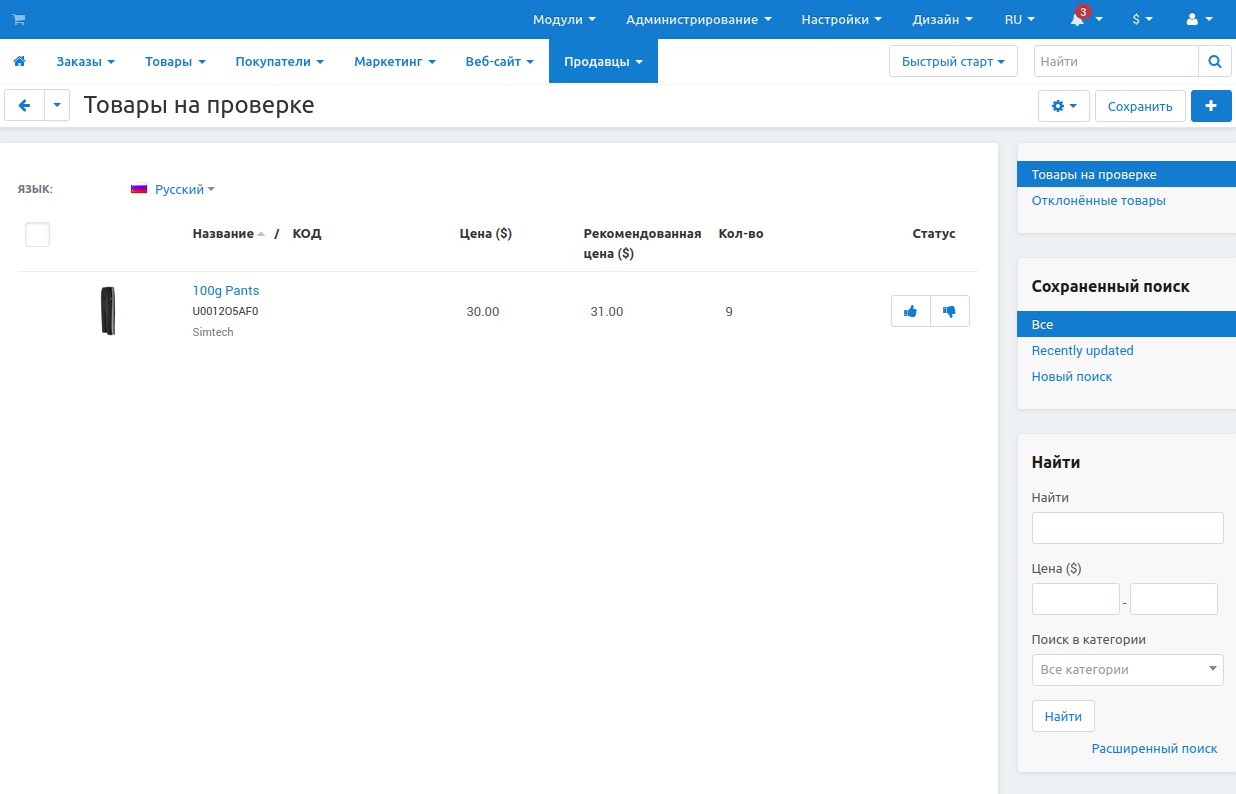 - Проверка новых товаров — если требуется одобрение новых товаров продавца, то покупатели их не увидят, пока администратор их не одобрит.
