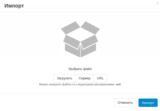 - Загрузить — загрузка XML-файла непосредственно с компьютера пользователя.