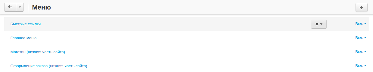 Чтобы добавить новое меню, нажмите кнопку +. Чтобы изменить существующее меню, нажмите на кнопку с изображением шестерёнки рядом с выбранным меню и выберите Редактировать.