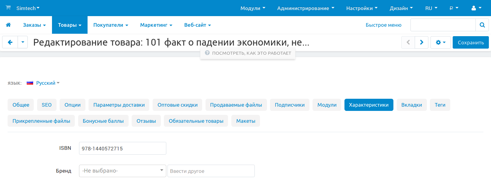 Также можно назначить товарам характеристики с помощью импорта товаров.