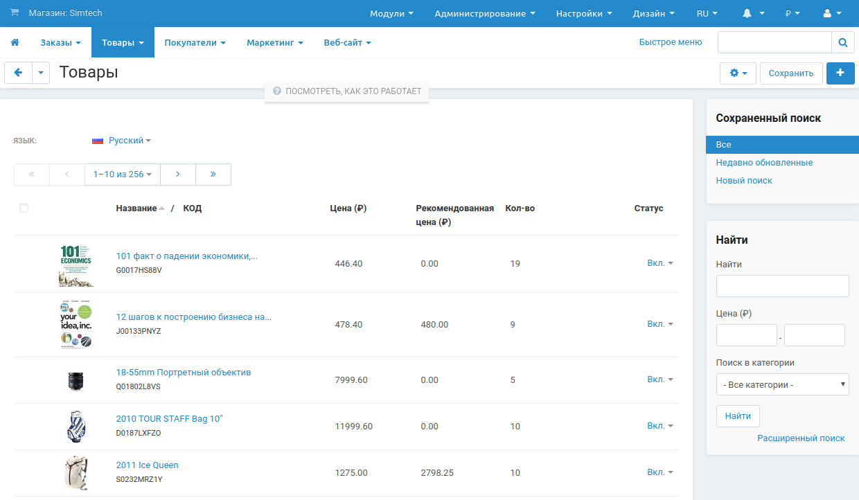 Данный раздел посвящен возможностям платформы по созданию и редактированию товаров и категорий.
