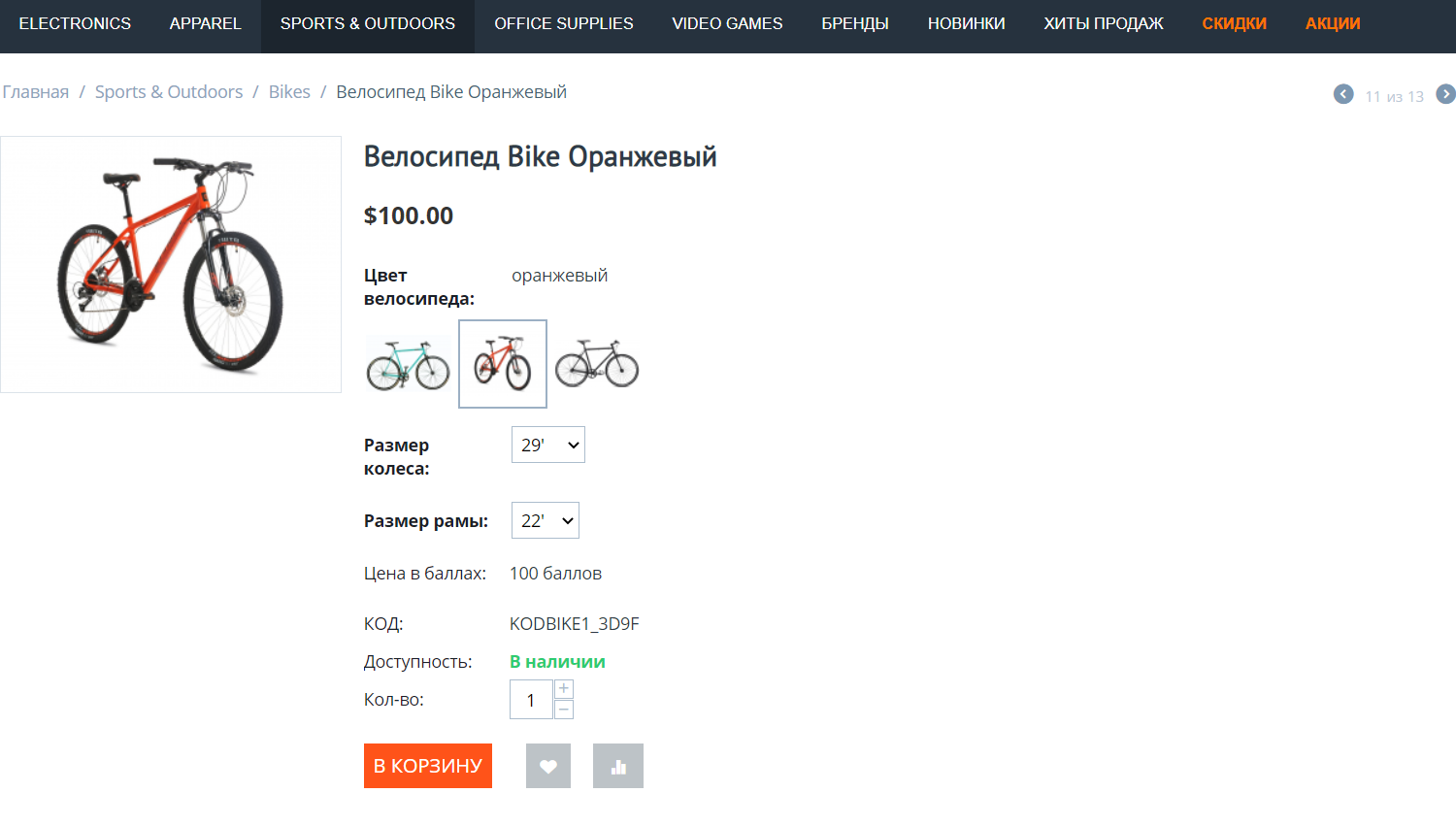 Создайте товар. В этом примере мы создадим велосипед.