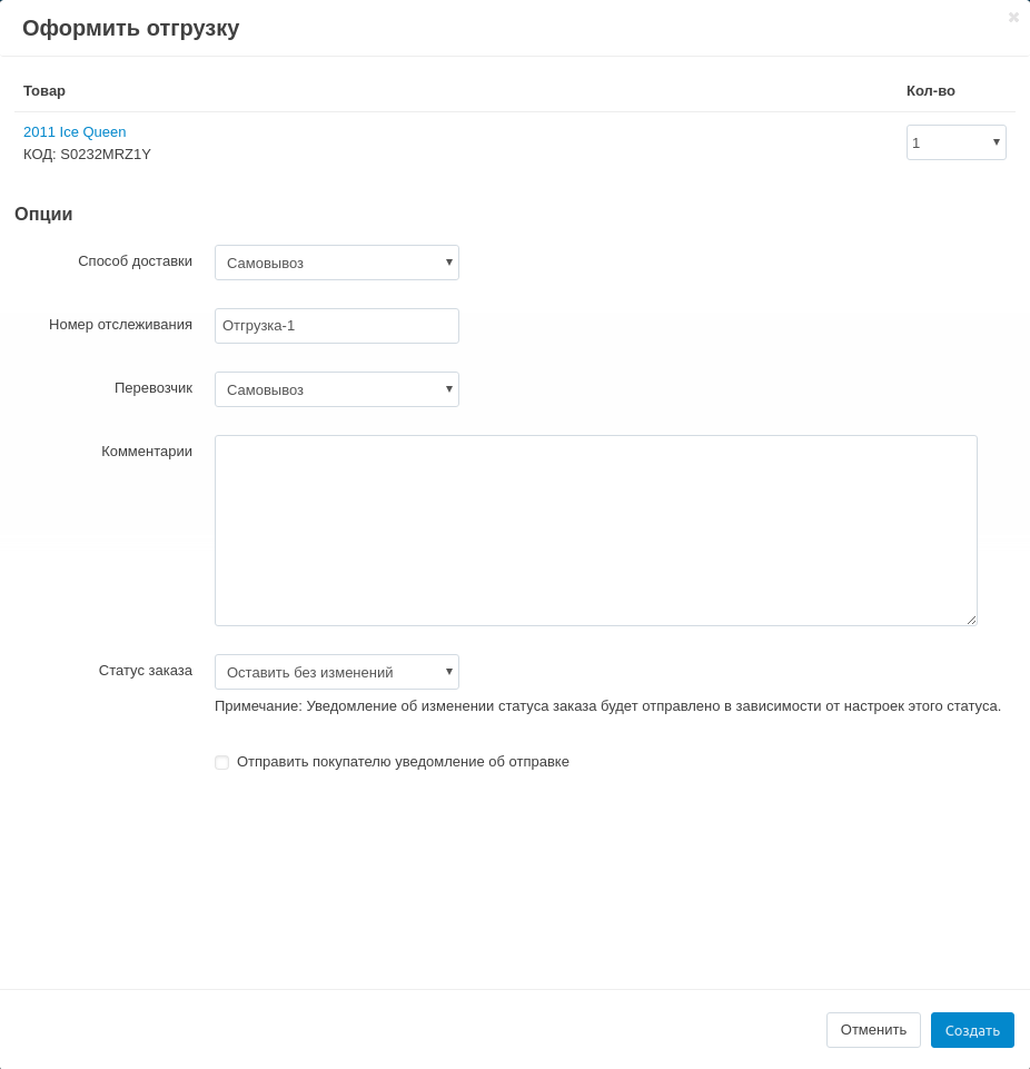 Создание отгрузки вручную¶