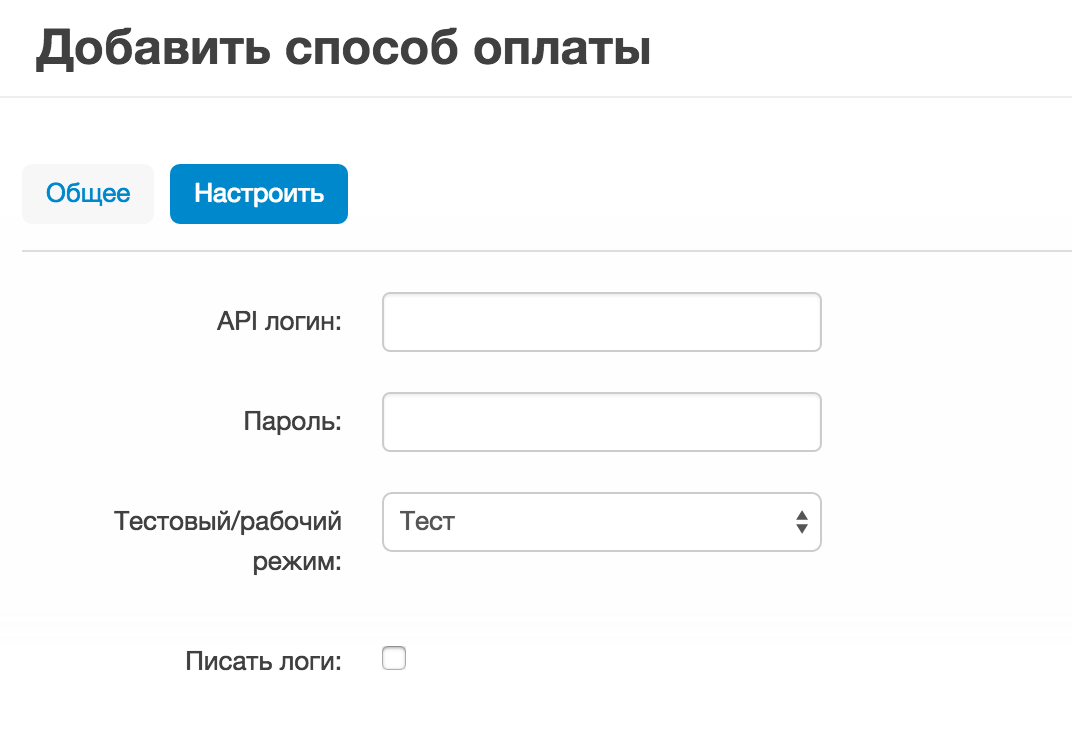 Пройдите во вкладку “Настроить” нового способа оплаты и выполните настройку.