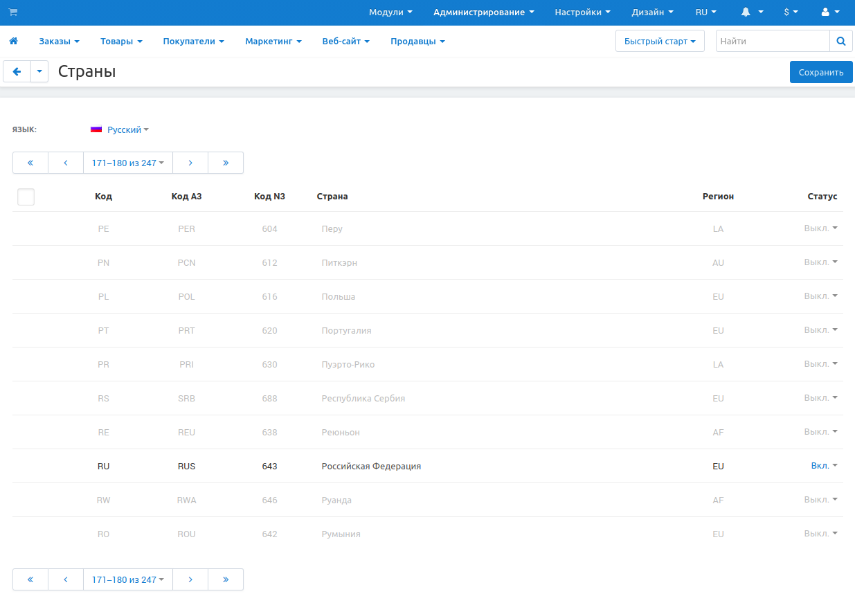 Если вы выключите страну, пользователи не смогут её выбрать в своём профиле и при оформлении заказа.