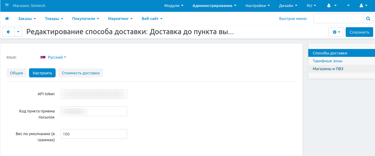 Откроется страница создания способа доставки. Обязательно задайте следующие настройки: