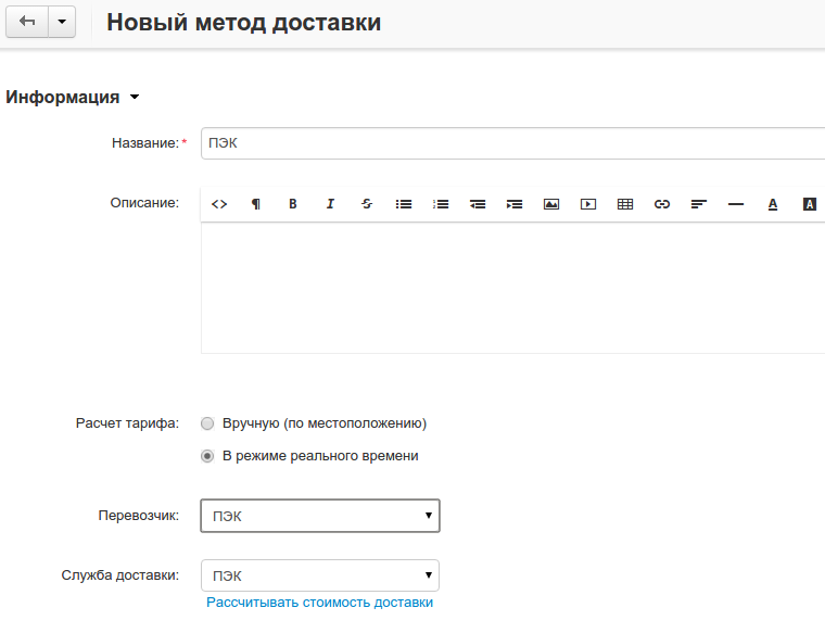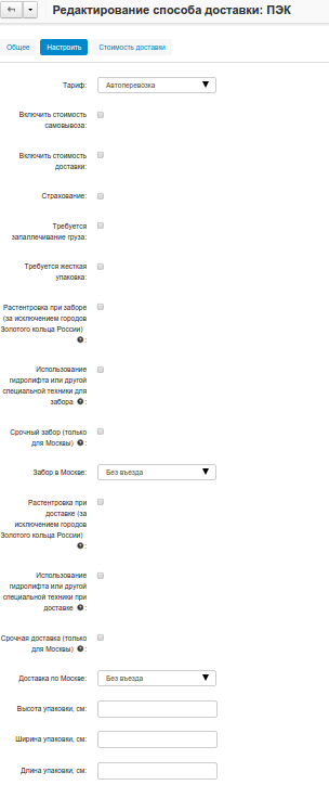 Настройки нового способа доставки: