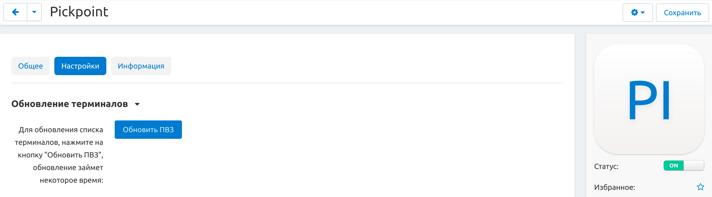 Убедитесь, что модуль “Pickpoint” установлен и включен.