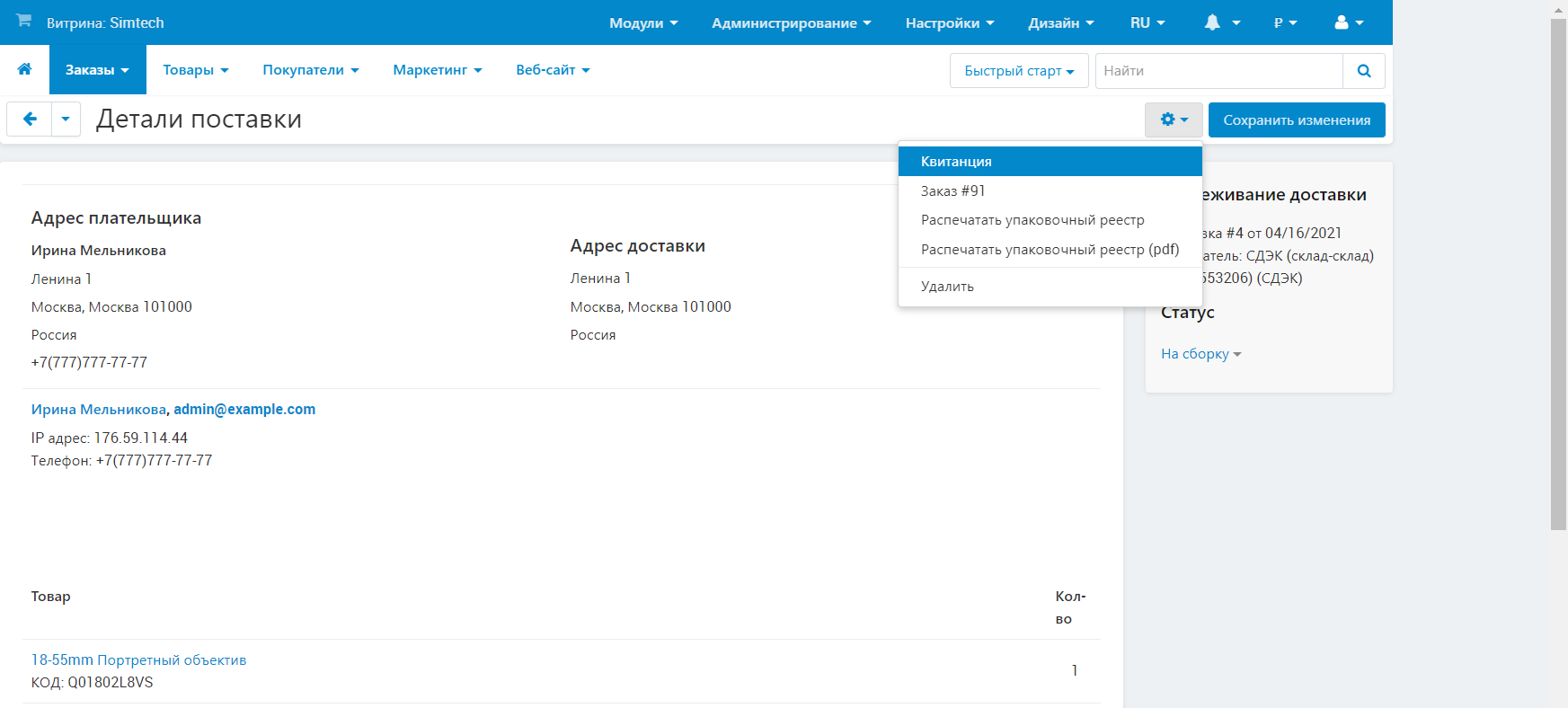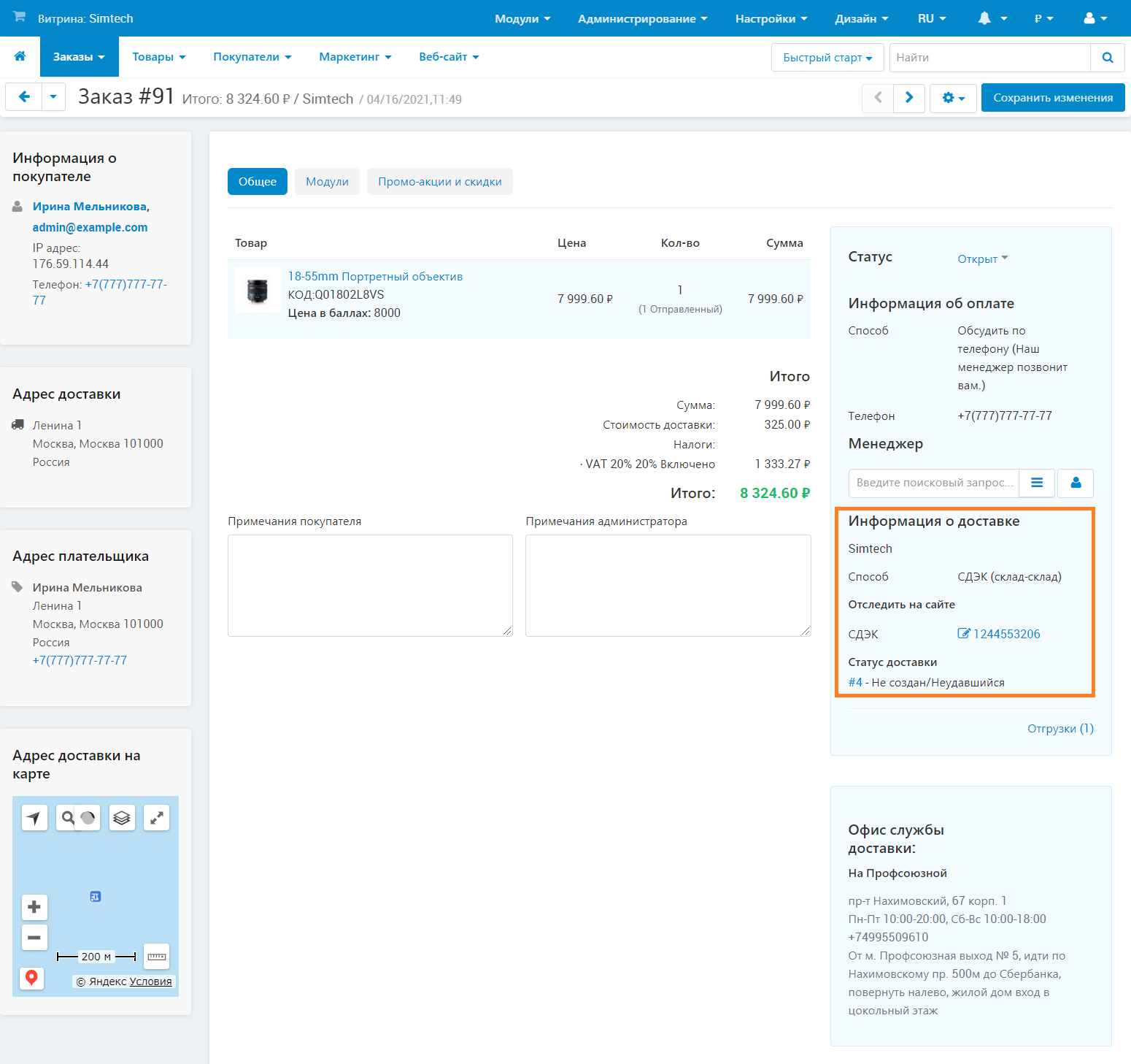 Комментарий — комментарий к заказу, который необходимо передать в службу доставки СДЭК.