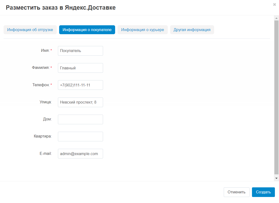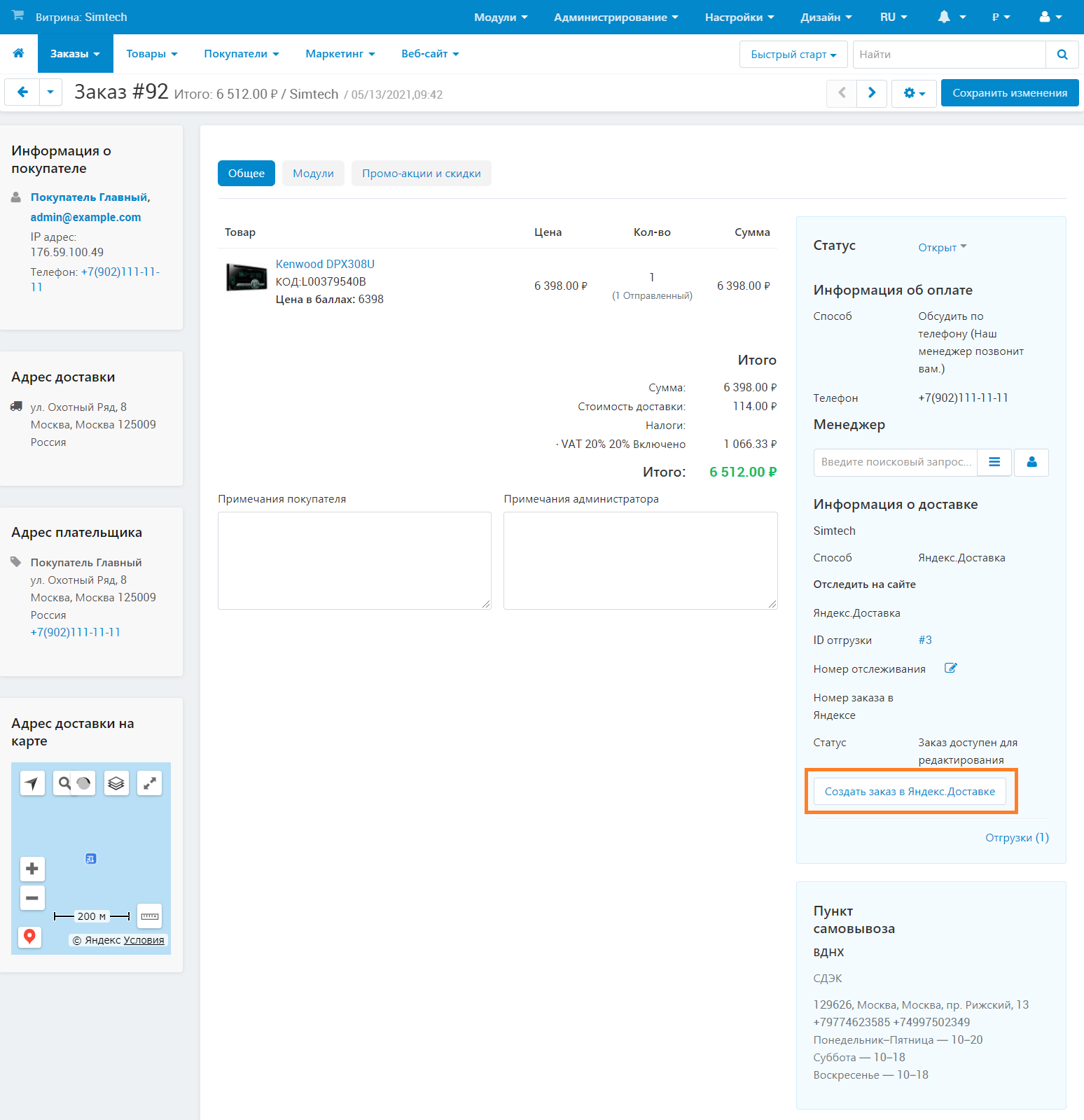 После того, как покупатель оформит заказ в магазине, администратор может создать соответствующий заказ в Яндекс.Доставке. Созданный заказ уже нельзя будет отредактировать.