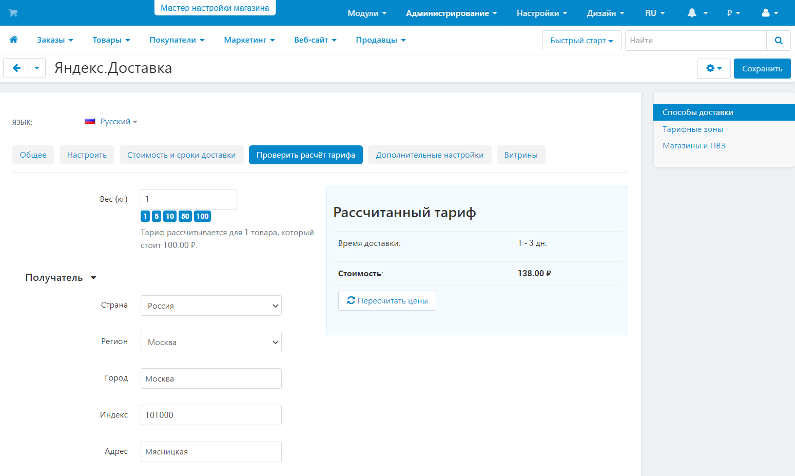 - Расчёт тарифа — Яндекс.Доставка как один из способов расчёта в режиме реального времени.
