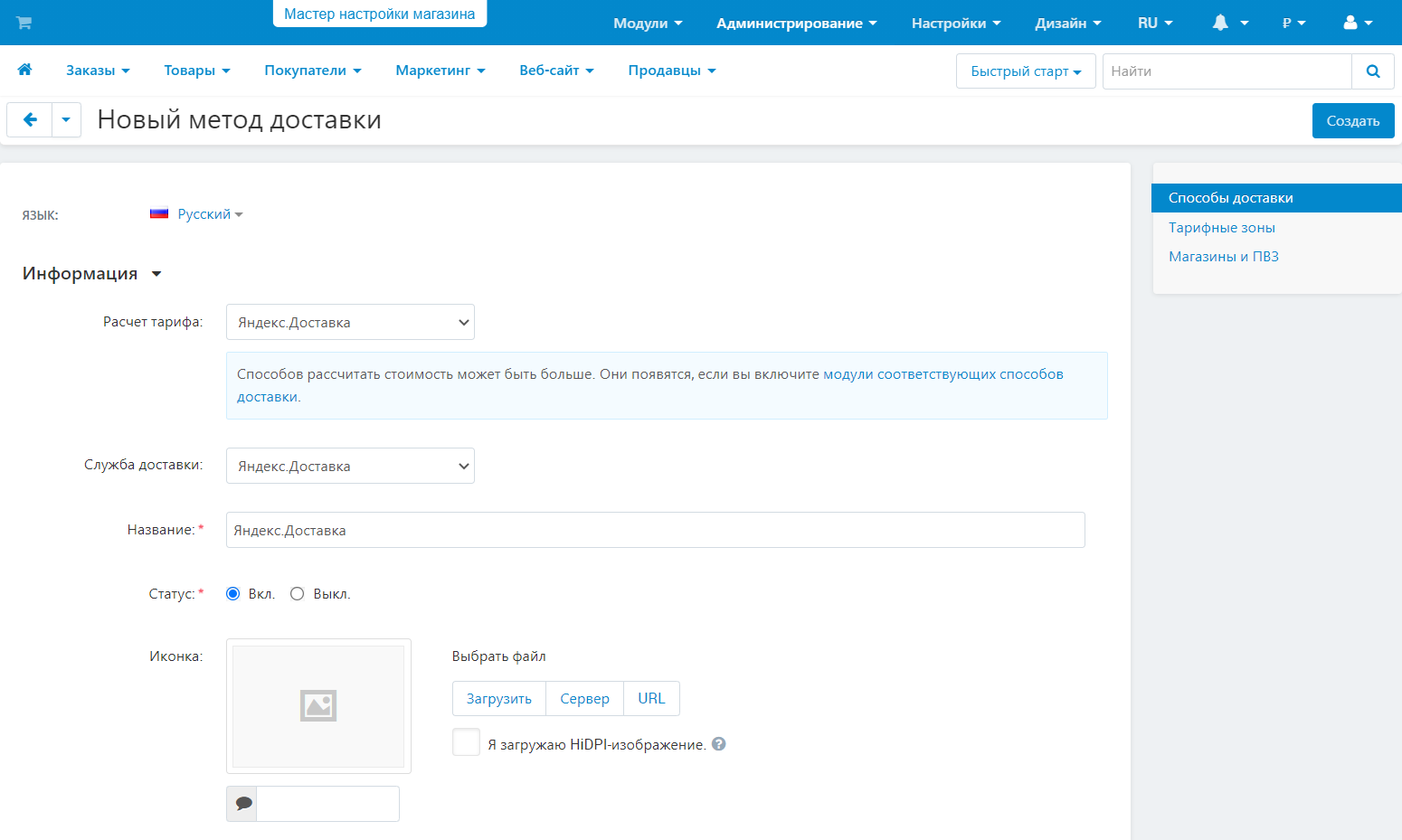 Выполните настройку нового способа доставки на вкладке Настроить: