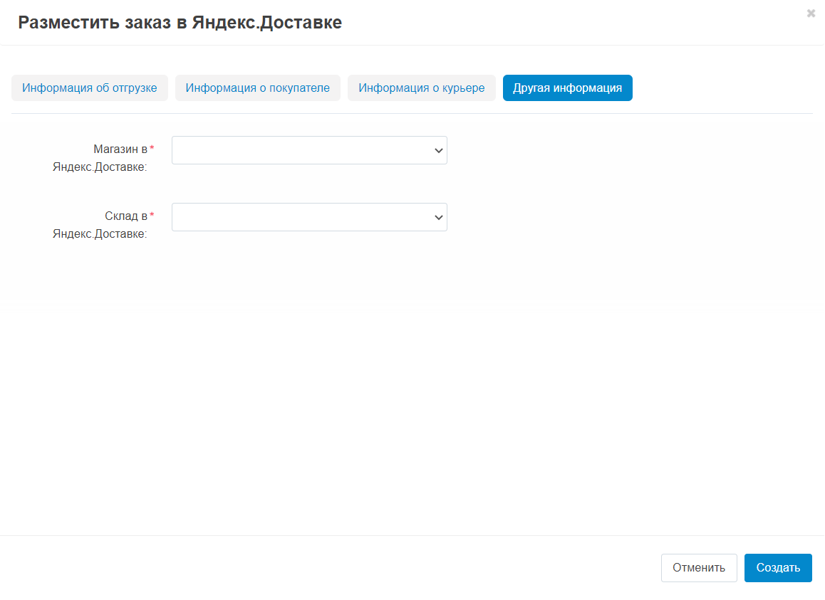 Вкладка Другая информация: заполнение информации о магазине и складе в Яндекс.Доставке.