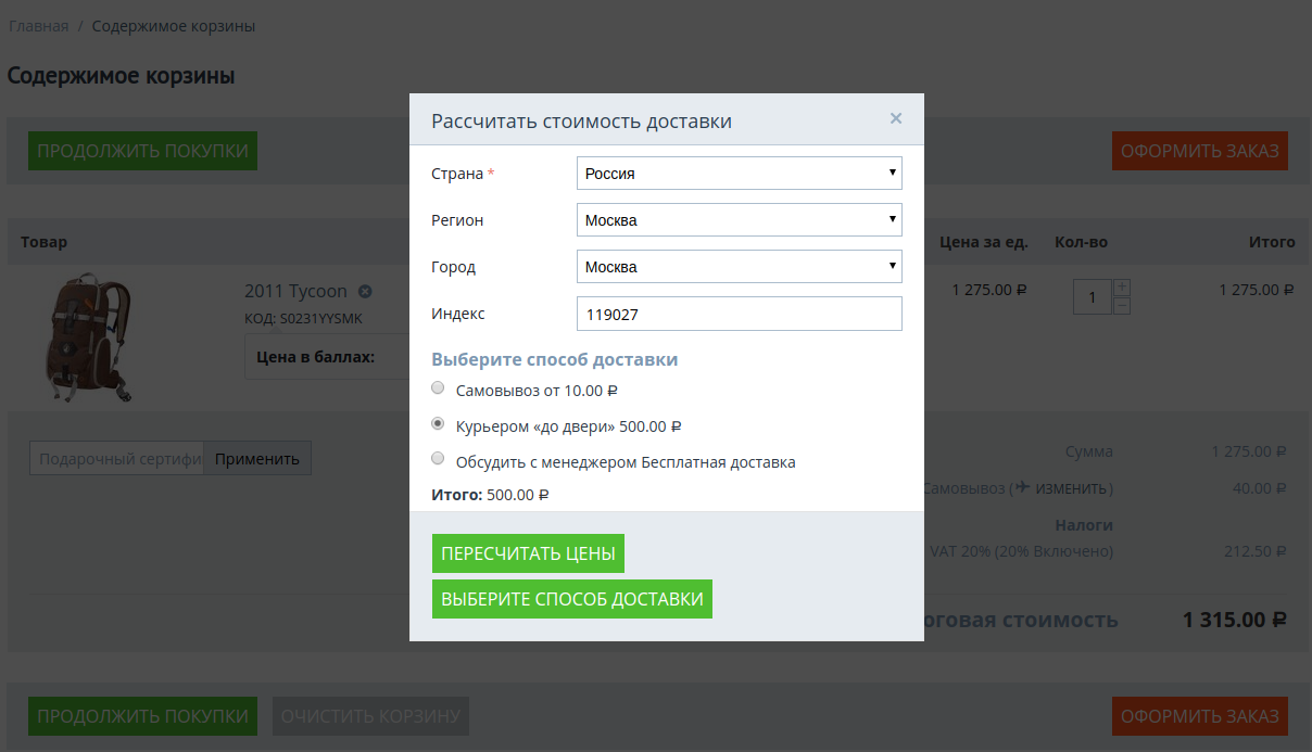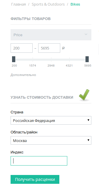 Вы можете добавить блок “Узнать стоимость доставки” на любую страницу интернет-магазина. В этом блоке покупатель сможет получить стоимость доставки для всех товаров, которые на данный момент находятся у него в корзине.
