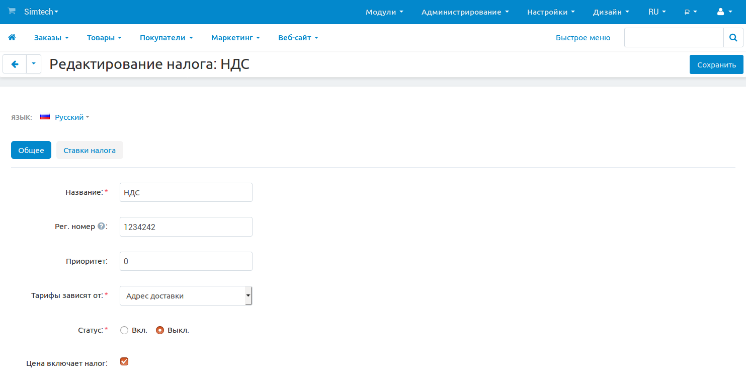 Как настроить налоги в CS-Cart