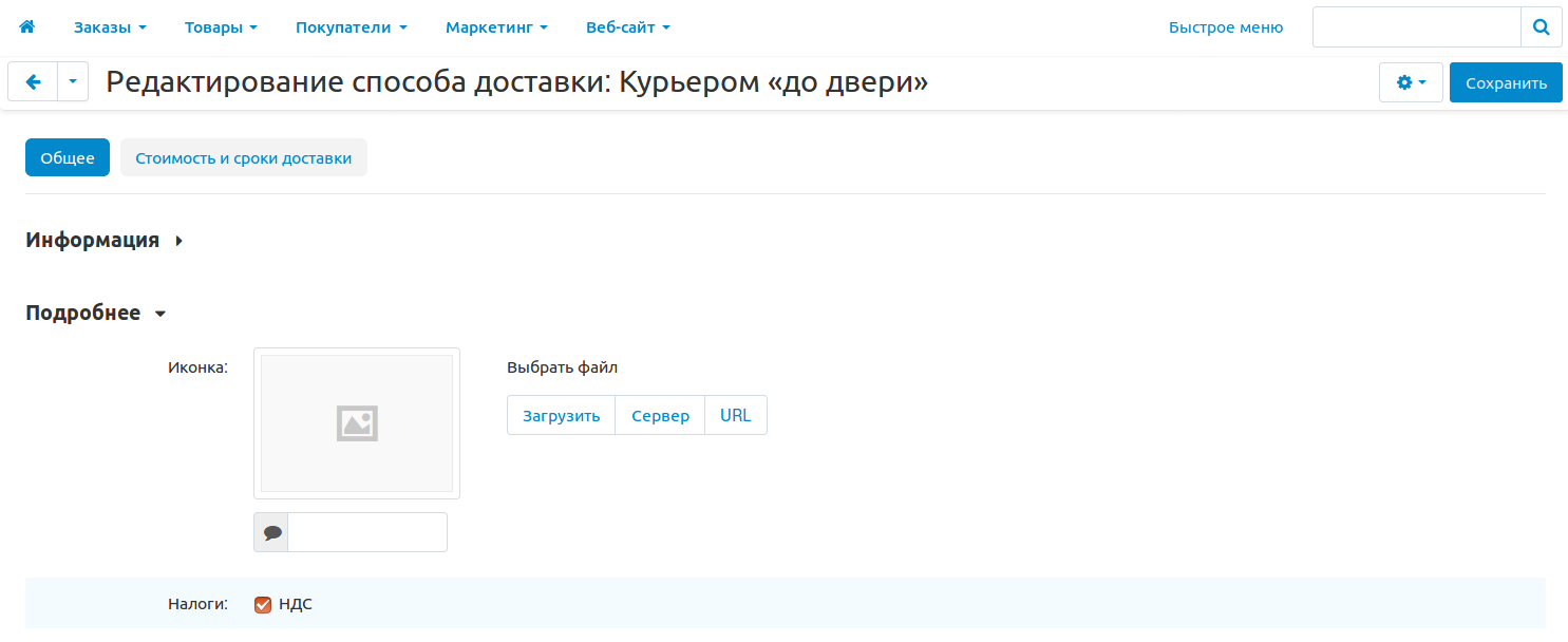 1. Откройте страницу Администрирование → Доставка и налоги → Способы доставки.