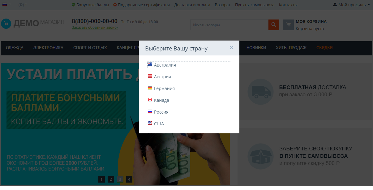 Данная функция пригодится тем, кто хочет иметь несколько локализованных витрин с уникальными товарами для определённых стран.