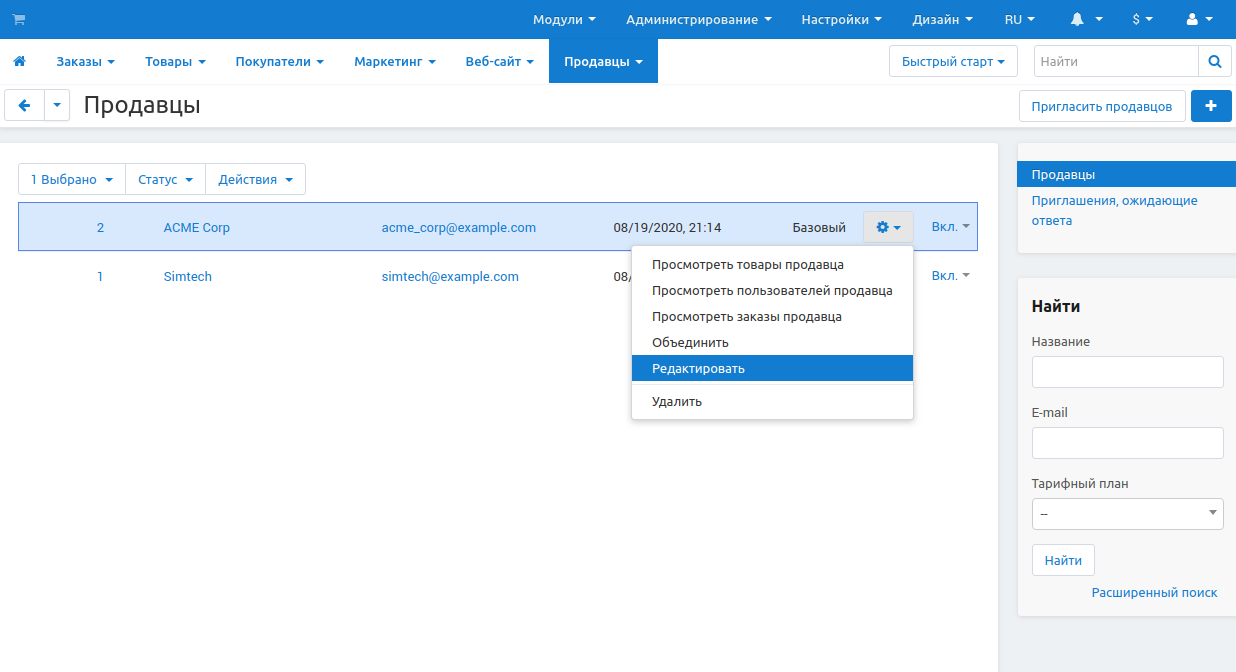 Фактически, каждый продавец — это отдельная компания со своей панелью администратора. Через эту панель доступ к магазину получают администраторы продавца. Они добавляют в магазин товары продавца, работают с заказами и продажами, создают способы доставки и следят за балансом учетной записи.