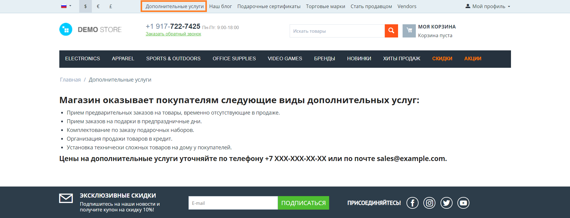 В этой статье мы поэтапно разберем как создавать служебные страницы в магазине (например, политику возвратов и т.п.) и как изменить их внешний вид.