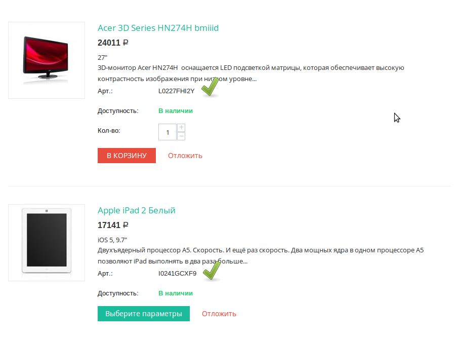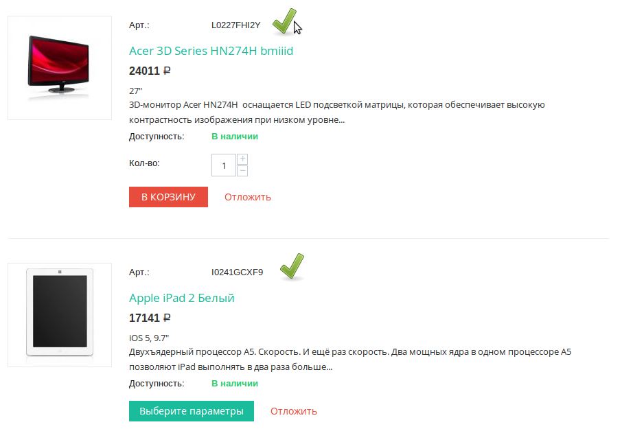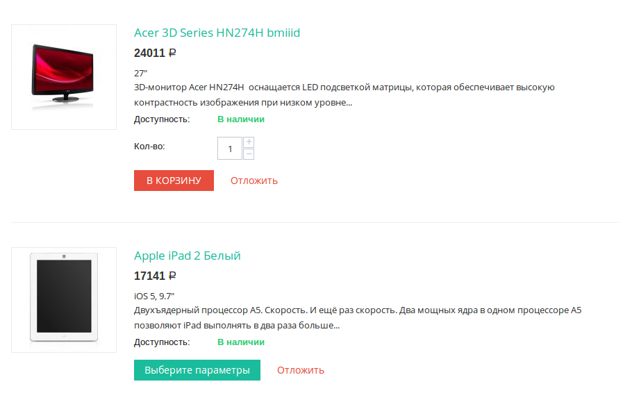используется для отрисовки HTML большинства продуктовых страниц и блоков. Обычно подключается в шаблоне следующей конструкцией. Рекомендуем изучить его возможности.Мы отобразили код товара на странице списка товаров.