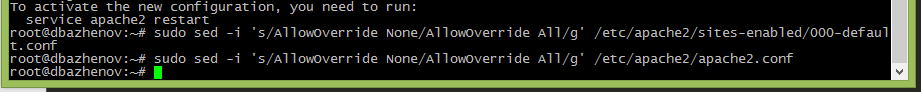 sudo sed -i 's/AllowOverride None/AllowOverride All/g' /etc/apache2/sites-enabled/000-default.conf