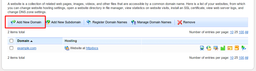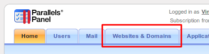 Открываем главную страницу Plesk 10. И находим элемент Websites and Domains в главном меню.