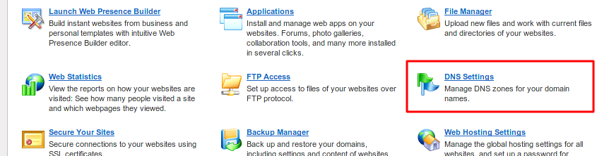 - Кликаем по ссылке DNS Settings, выбрав предварительно в главном меню Websites & Domains.