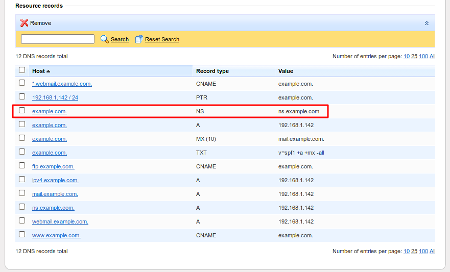 Значение настройки NameServers будет храниться в записи с типом NS.