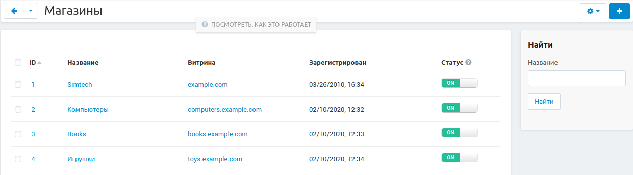 Открываем example-store.com. У нас должен открыться магазин, у которого в поле URL витриный указан example-store.com.